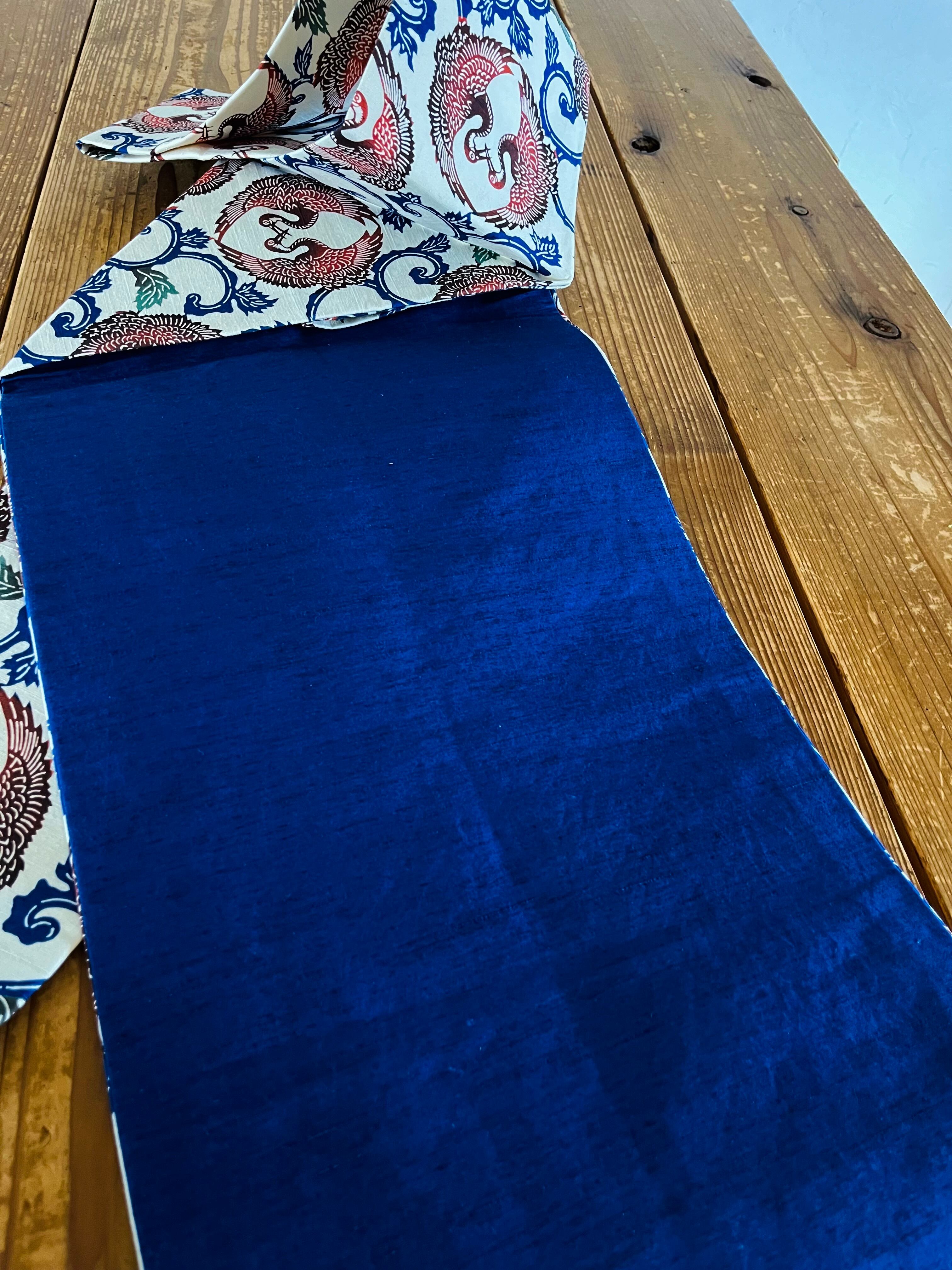 たれ先は藍色の無地、たれとお太鼓部分の裏側も同じく無地です。